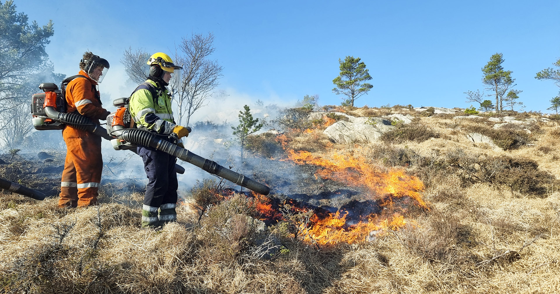 Brenn igjen:Når desse karane bles til flammane i Tysvær-området, svir dei seg inn i ein mange tusenårig tradisjon for skjøtsel og fornying av landskapet.