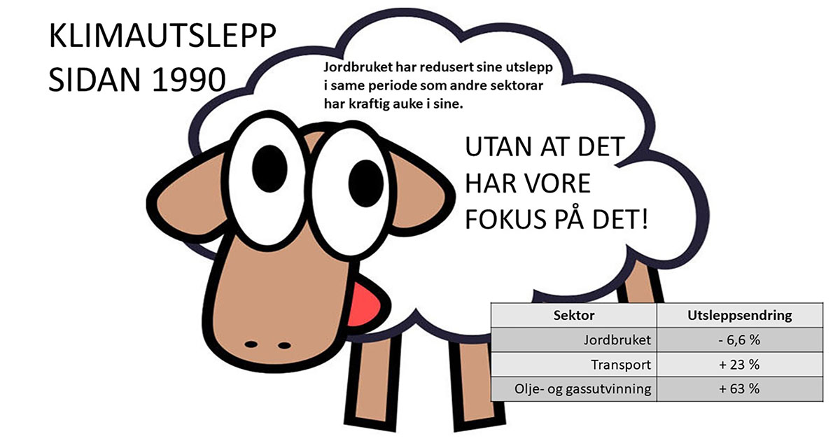 Haugen meiner landbruket er ei føregangsnæring når det gjeld å redusere klimaavtrykk, men at dette ikkje er godt nok kommunisert. Medan andre næringar og samfunnet generelt aukar utsleppa, har landbruket dei siste tiåra redusert sine.