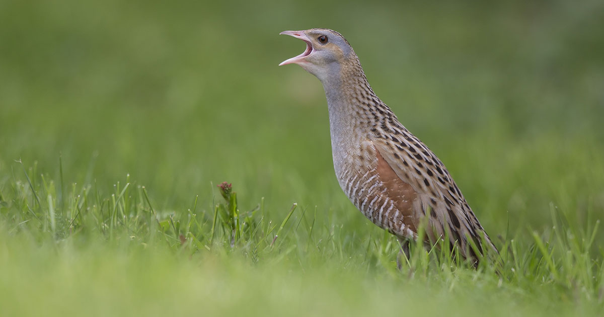 Crex-crex! Nedgangen i bestanden av åkerrikse startet allerede på slutten av 1800-tallet. Nå skal du være heldig, om du hører fuglens karakteristiske kallerop. Det lyder nesten som dens latinske navn Crex-crex. Foto: Frank Steinkjellå