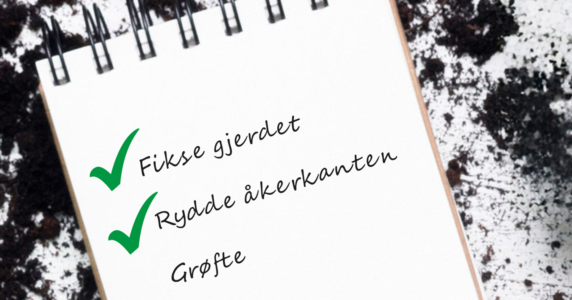 Fikse gjerdet, rydde åkerkanten, grøfte, kalke, reparere maskinane, bekjempe ugras… Ingen grunn til ikkje å kome våronna i forkjøpet!