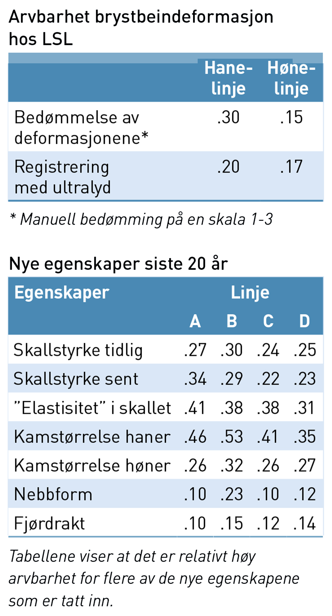I tråd med samfunnsutviklingen ellers, øker oppmerksomheten rundt dyrevelferd også i avlsarbeidet. Lohmann har for eksempel startet det de kaller «Bedrebein-prosjektet» for å bedre utfordringene med brystbein-deformasjon. Her brukes ultralyd til å registrere beinstyrken (se bilde) i kombinasjon med manuell bedømming av deformasjonene. I tillegg er det utviklet genomiske markører til bruk i seleksjonen.