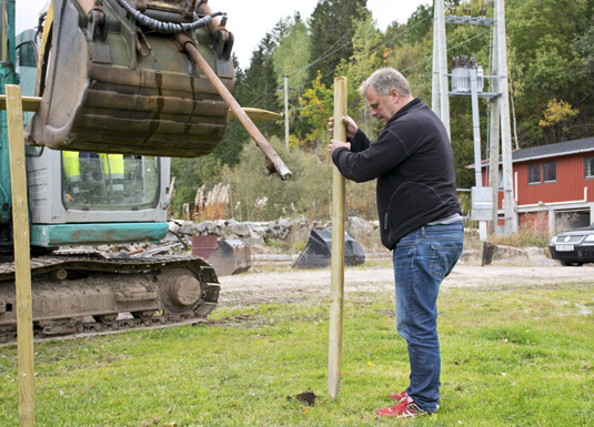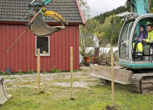 For å effektivisera gjerding og rydding, nytta dei ein liten gravemaskin. Ein maskin som var passe liten og passe stor til å koma til rundt heile beitearealet. Odd Magne sveisa eit feste med gjenger på skuffa på gravemaskinen. Eit feste som passa til eit borerøyr han hadde liggande. Når pålane skal i jorda, festar dei borerøyret til skuffa og fyller skuffa med pålar. Ein person i gravemaskinen og ein til å sette ned pålane, gjorde arbeidet svært effektivt. Noko av skogsområdet vart rydda, og ein del av den dyrka jorda er fornya. All dyrka jord skal pløyast i løpet av dei neste åra.