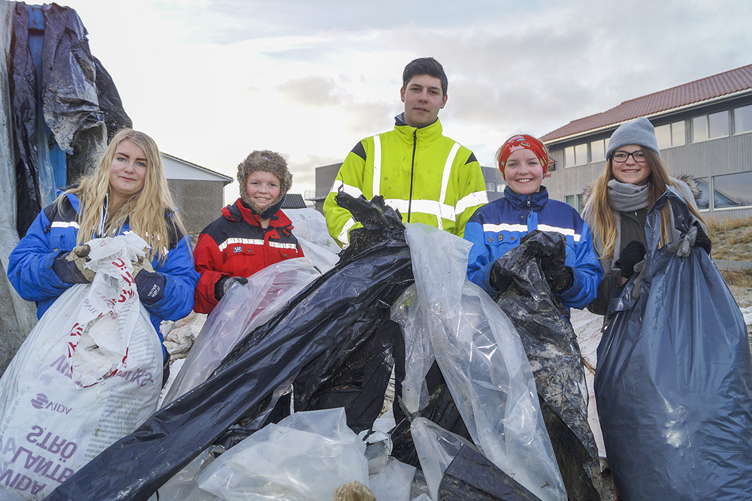 – Eg er ikkje sikker, ti år, minst, seier ein av ungdommane, Jøran Valdeland Voll, og rettar seg opp frå haugen med plast han står og sorterer saman med dei andre ungdommane.