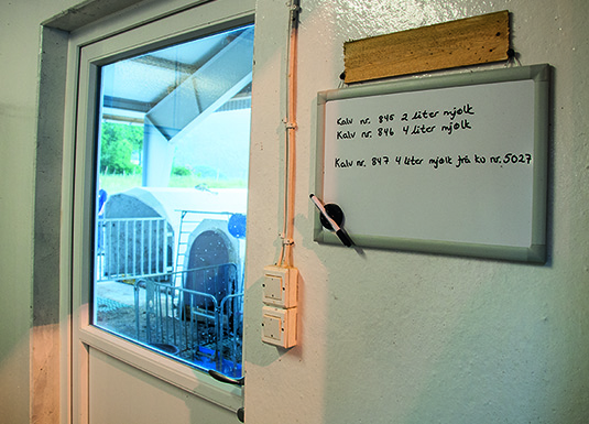 Kalvahyttene står utandørs, og er lett tilgjengelege frå fjøset. Bøndene har tavler for beskjedar i fjøset, kvar tavle er plassert godt synleg