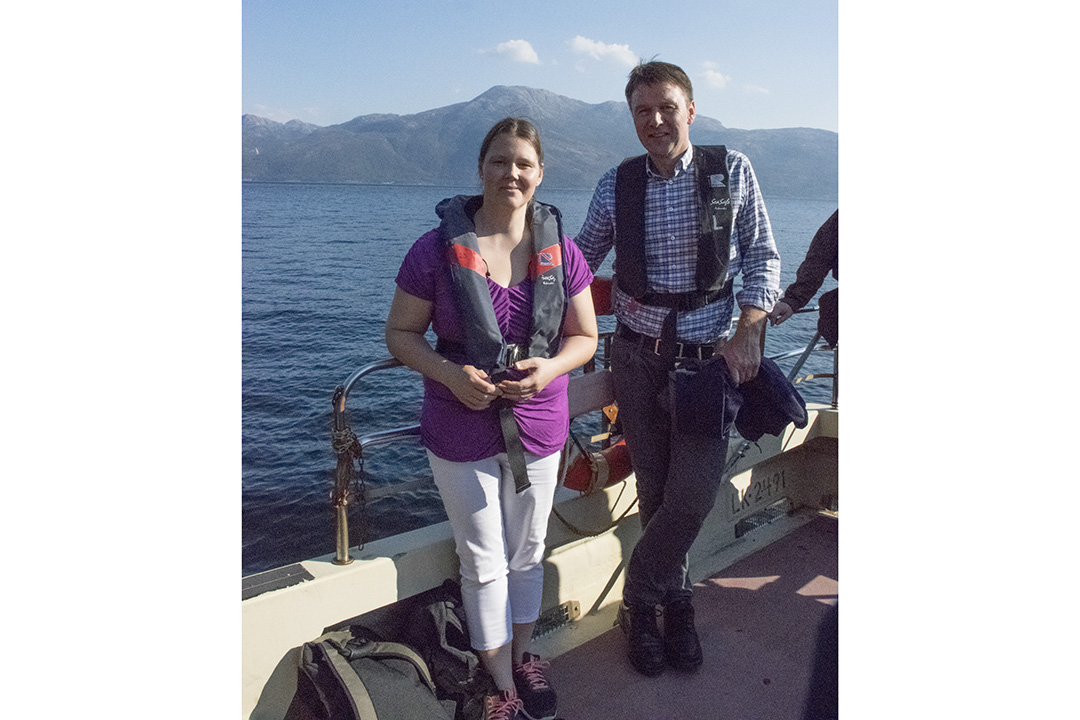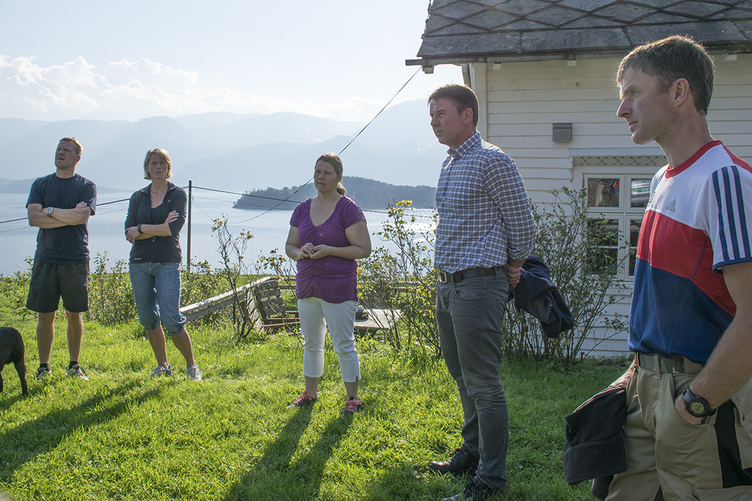 Karin Thauland og Tore Eik, frå Kvinnherad kommune, Lars Peter Thaule og Frøydis Haugen, frå Hordaland bondelag, var også invitert på besøk til Varaldsøy denne dagen.