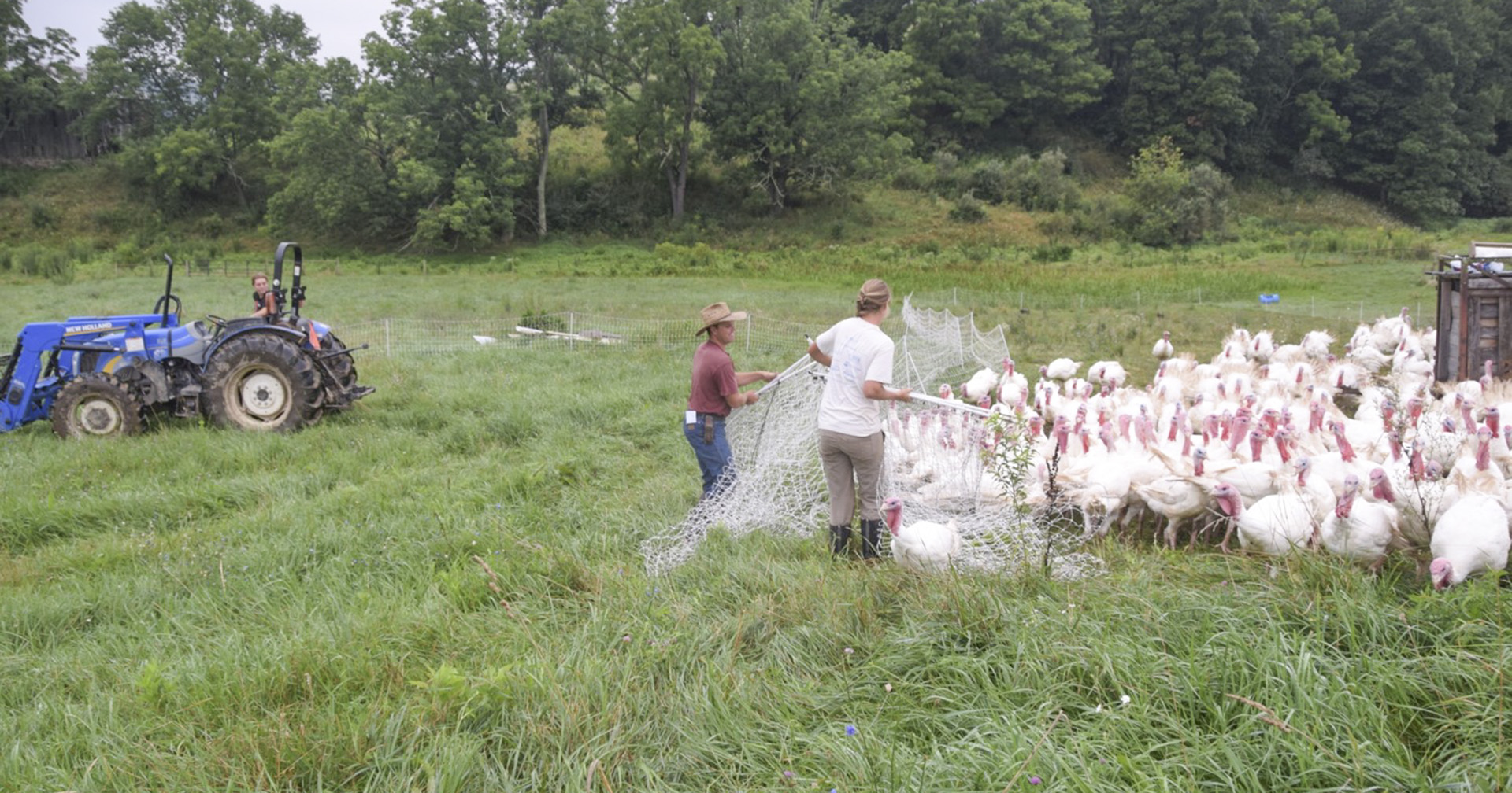 Kyrne på Polyface blir flytta frå eit beite til det neste éin gong i døgnet. At dei berre rekk å eta toppskota, gjer at graset er i stadig vekst- og karbonfangingsmodus. Tre dagar etter pussen flyttar fjørfeet inn. Då har fluelarvene i kurukene blitt akkurat store nok til å freista hønene, som pikkar, sparkar og spreier den livgjevande gjødsla under måltidet. I små hus på hjul legg hønene egg for titusenvis av dollar.