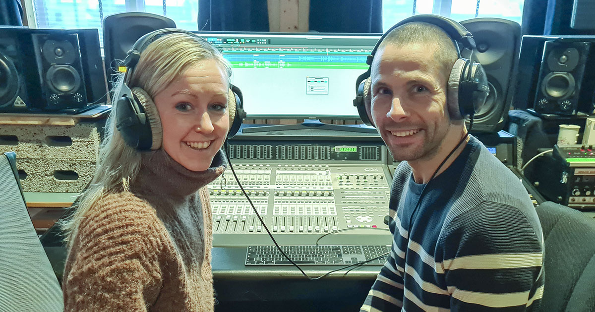 Innspeling pågår: På nyåret er Ingvild Luteberget Nesheim og Magnus Haugland klare med dei første episodane av Bondevennens fagpodcast, spelt inn i felt og i ABCStudio i Etne. Foto: Kjetil Ulland
