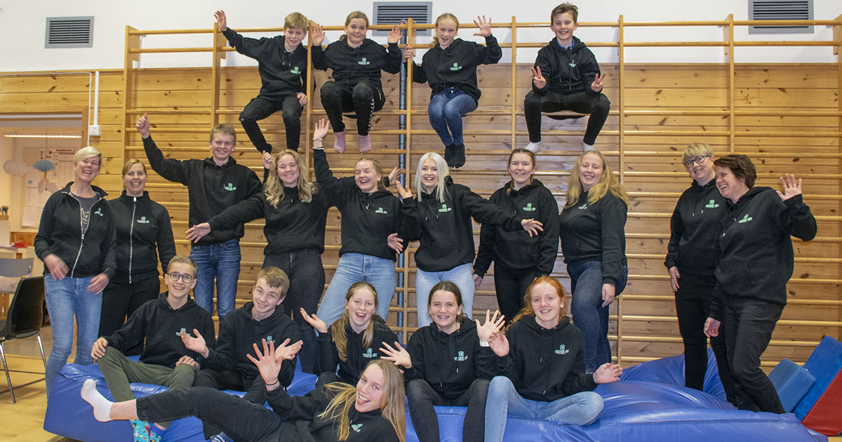 I ribbeveggen: F.v. Torje, Karen, Marte, Tollak. Mellomste rekke: F.v. Siv og Siv, klubbrådgivarar, Tobias, Kristin, Ruth, Live, Tora, Eilen og klubbrådgivarane Nina og Silje. Framme: F.v. Martin, Torstein, Silja, Anne og Lilly. Maren liggande framfor.