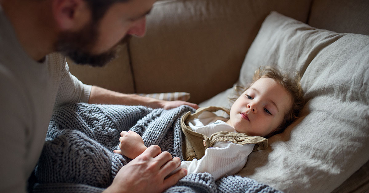 Sjuke born: Også når dei minste må halde seg på sofaen, er det råd for bonden å få refundert avløysarutgiftene. Hugs legeerklæring og dokumenterte lønsutgifter, minner rekneskapsførar Irene Time Grødem om. Illustrasjonsfoto: Istock