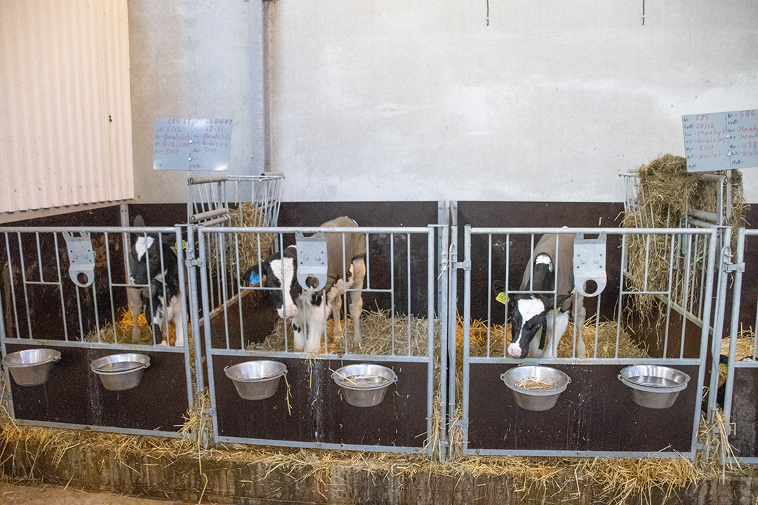 Frå 60 til 120 dagar går kalvane i fellesbinge på talle og får kumiks og fri tilgang til kalvekraftfôr. Frå 120 dagar til seks månadar er dei over på liggebås. Dei får 500 gram soya i tillegg til kumiks. Frå seks månadar får dei eigen ungdyrmiks og 200 gram roetopp og vitamin og mineral.