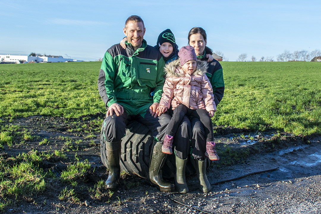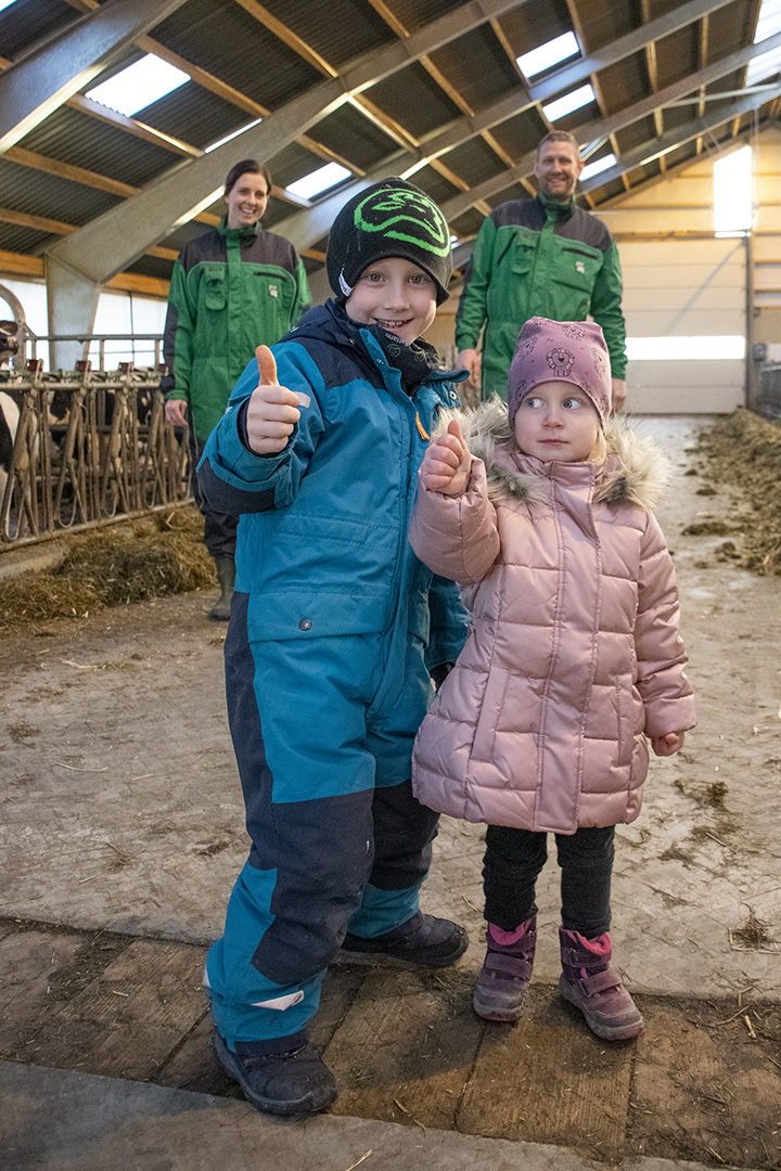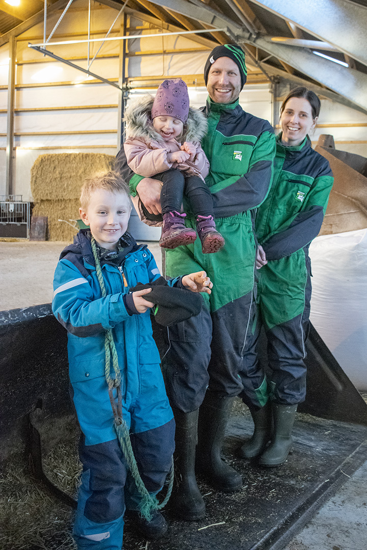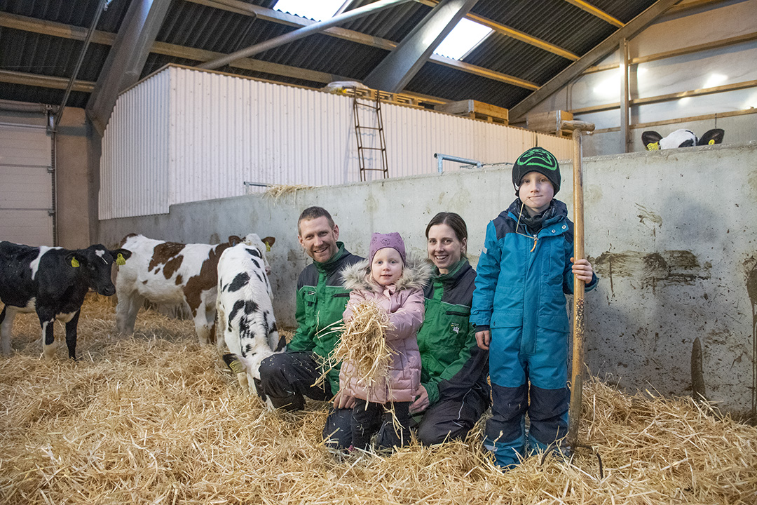 Kristine og Kristian Skrettingland med barna Levi (7) og Ada (3) driv med mjølk og smågris på Varhaug i Hå kommune på Jæren. Dei har 55 årskyr av rein Holstein. I år er kvoten 650.000 liter. Oksekalvane og nokre kryssa kvigekalvar vert selde til liv. Dei eig 150 dekar og leiger 350 dekar dyrka jord og har nok grovfôr til eige bruk. Dei sel 3500-4000 smågris i året.
