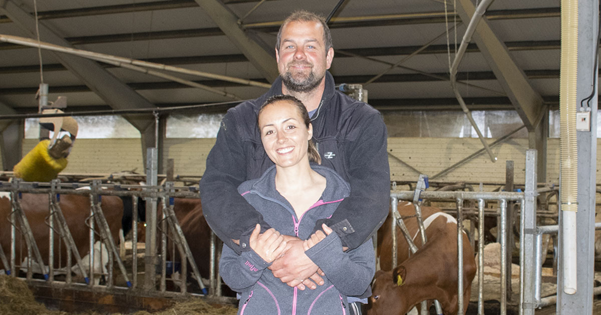 Benedikte og Morten Christensen har bygd fjøs til mjølk og ammekyr. – Samarbeidet med andre bønder har vore avgjerande for at me torde satsa, seier Morten.