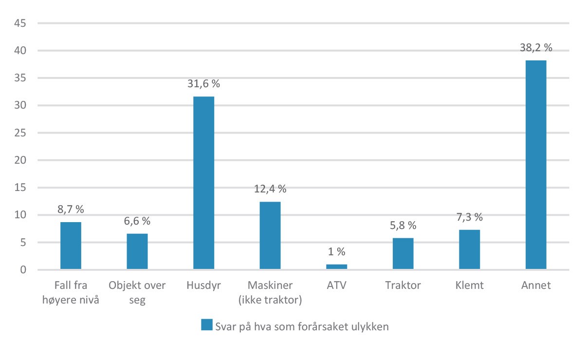 Kva skjedde?: Slik fordelte svara seg mellom dei 589 som svarte på undersøkinga om kva som var årsaka til ulukka. Her var det mogleg å skrive inn fleire svar. Figur: Ruralis (Rapport 1/2023).