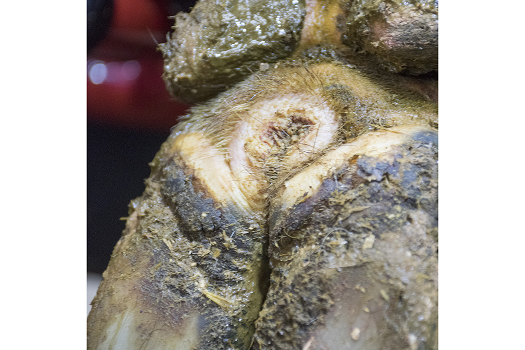 Hovedårsaken til sjukdommen antas å være ulike typer av bakterien Treponema. Bakterien i seg sjøl er ikke nok til å gi utbrudd. Årsaken til utbrudd er trolig et samspill mellom bakterier, ugunstige miljøfaktorer (bløtt og skittent) og dyr med nedsatt immunforsvar. Bakterien er spiralforma og har stor bevegelighet i fuktig miljø. I bløtt og skittent miljø kan bakterien invadere huden. Over tid kan det føre til varige skader på beinstillinga.