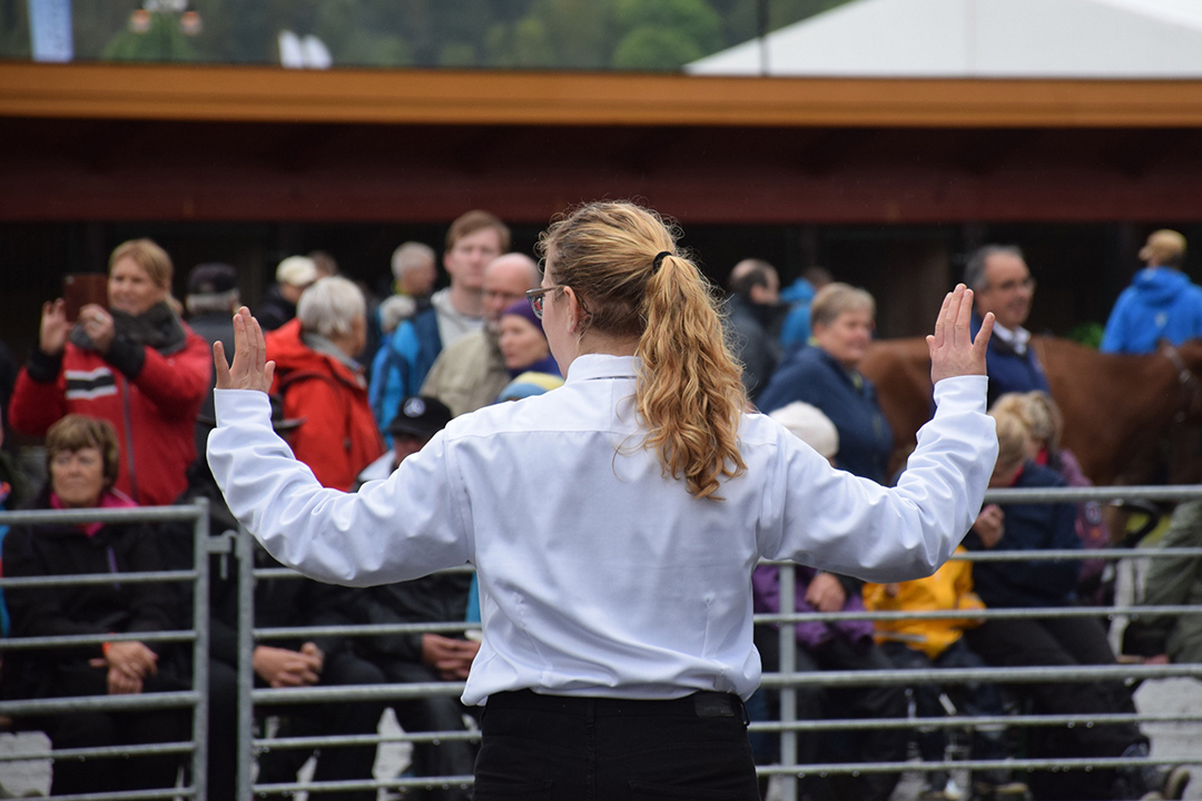 Rett etter dommarjobben var fullført, stilte Anna Kirstine Aarsland i klassa for ungdomsmønstring, og gjekk heilt til topps.
