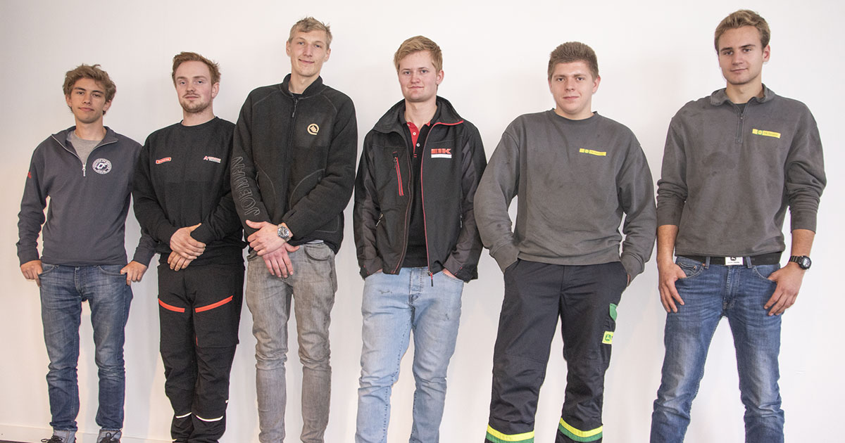 Lærlingar: Ein av desse seks blir kåra til årets lærling på Agrovisjon: Frå venstre: Konrad Meldal Johnsen frå CF-Maskin Follo, Tor Markus Haug frå Akershus Traktor på Jessheim, Dirk Benjamin Slingerland frå Ålgård Landbrukssenter, Kenneth Svendsen frå Eiksenteret i Haugesund, Sindre Rullestad frå Felleskjøpet Rogaland Agder sitt fagsenter i Kristiansand og Vegard Bækken frå Felleskjøpet på Lillehammer.