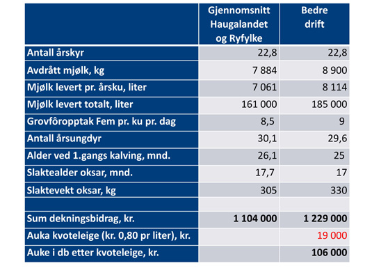Kjelde: Kukontroll og leveringsdata frå TINE og Q-meieriet.