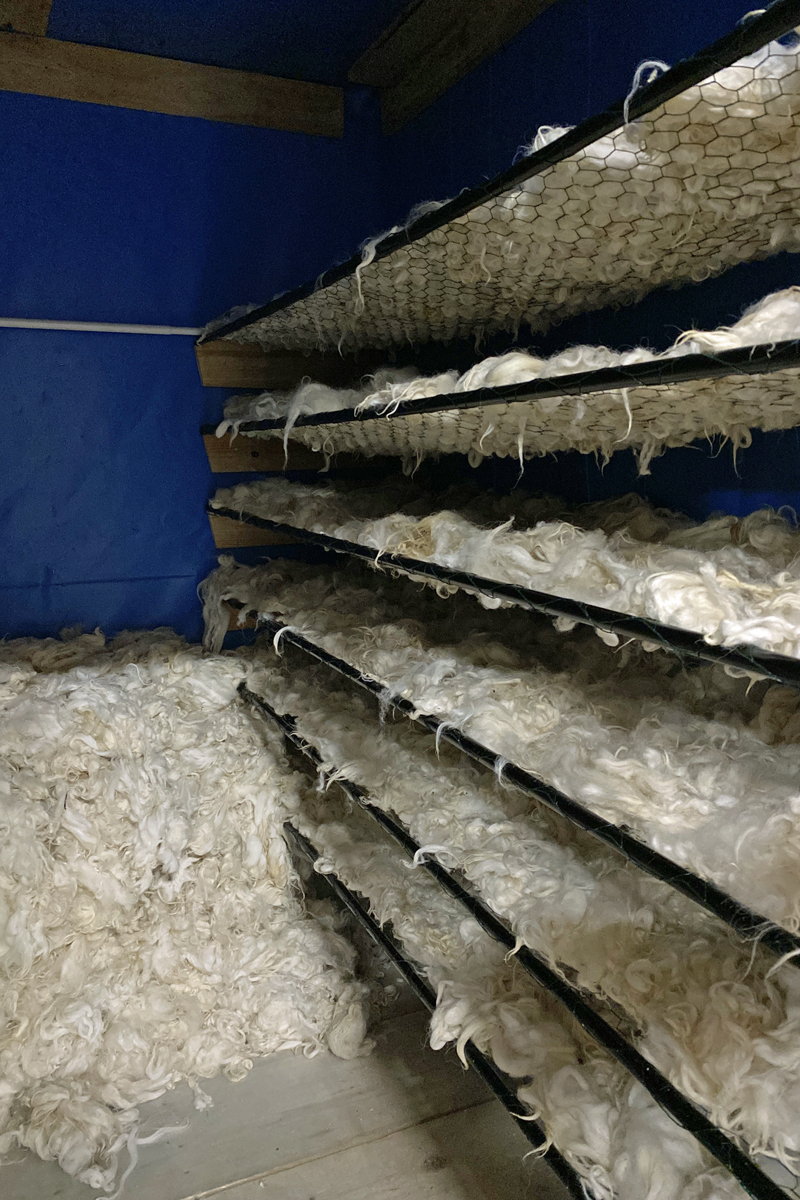 Maskinane fjernar mykje marghår og dekkhår. Dei grove fibrane som er att kjennest mjukare når dei er tvinna inn i finare fibrar.