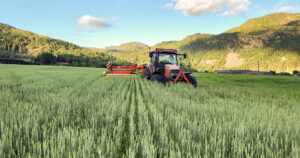 Kveiteslått: Slåing av kveiteattlegg hjå Øyvind Steinnes. Førsteslåtten går vanlegvis føre seg 10.-20. juli, medan andre slåtten av attlegget blir hausta i september. Foto: Øyvind Steinnes.