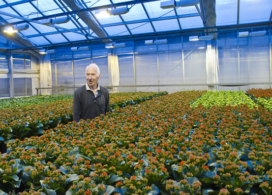 Vi møter Trond Hodne, travelt opptatt med å administrere en stor veksthusproduksjon av potteplanten Ildtopp, eller Kalanchoe som planten heter blant fagfolk.