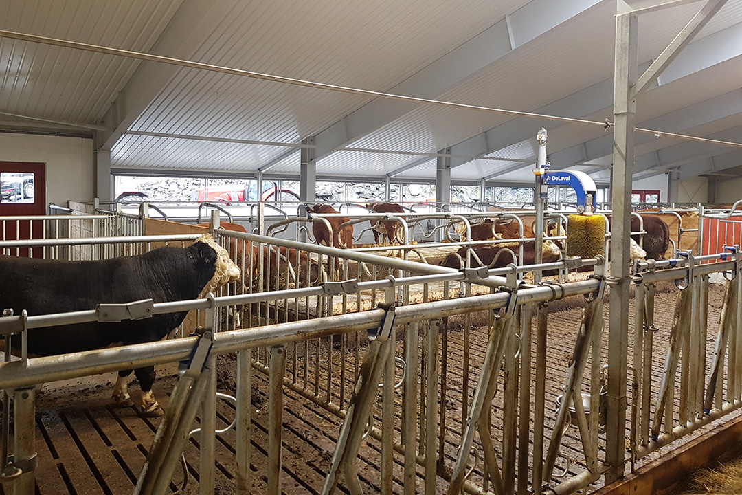 Det lille ekstra: Med god plass, mye lys og luft, og i tillegg to kubørster til kyrne, har Karsten Yndestad spandert litt ekstra velferd på dyrene i fjøset.