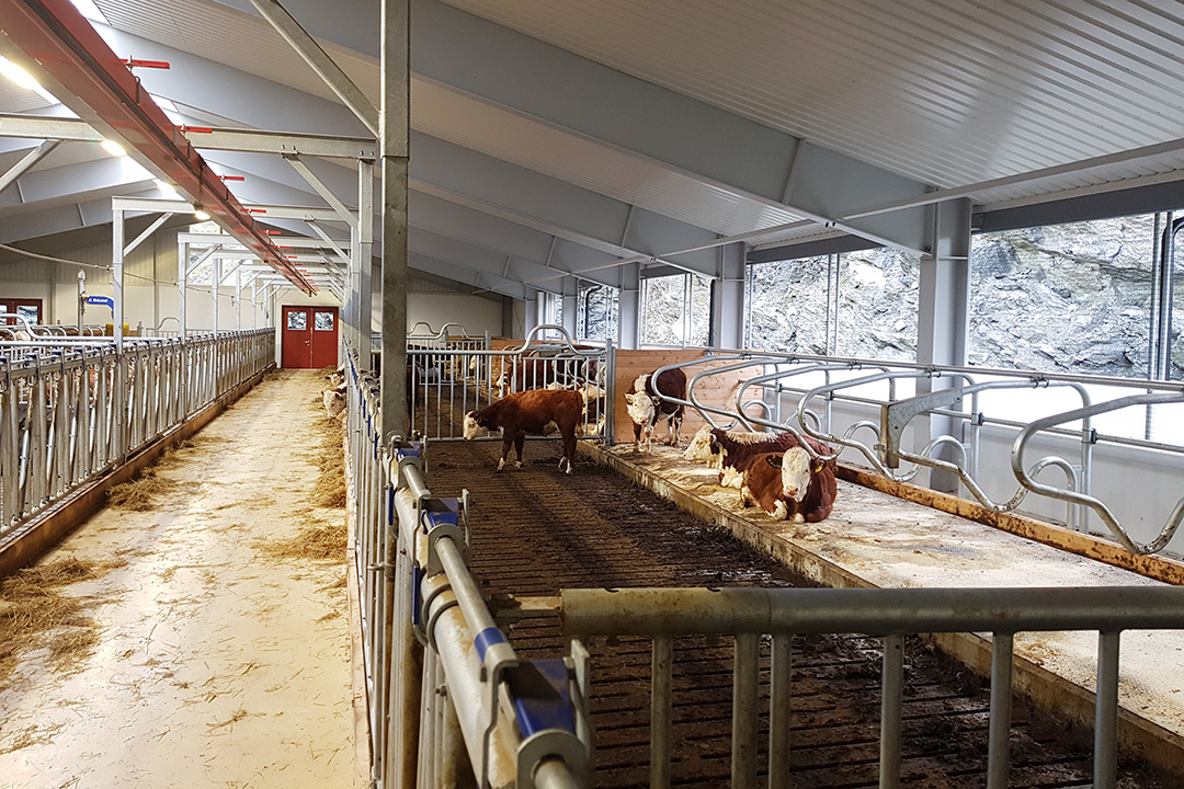 For å få plass til fjøset, har bonden selv fått sprengt ut 9000 kubikk med fjell på tomten. Det nye fjøset er fylt opp med hereforddyr, og planen er full framfôring av dyr til slakt. Karsten Yndestad vil ha vårkalving og få dyrene ut på beite så fort som mulig om våren. I dag driver Yndestad i tillegg framfôring av innkjøpte okser.
