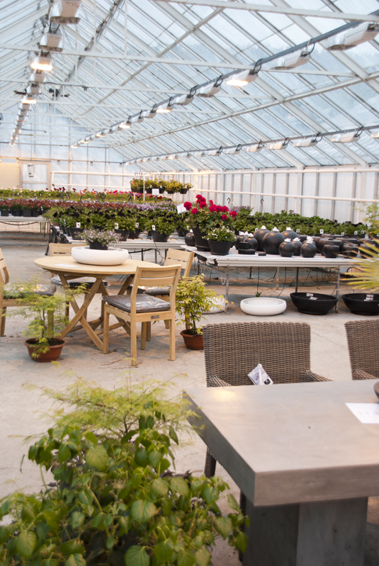 Møbler og planter, alt er til salgs.