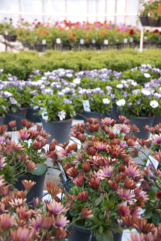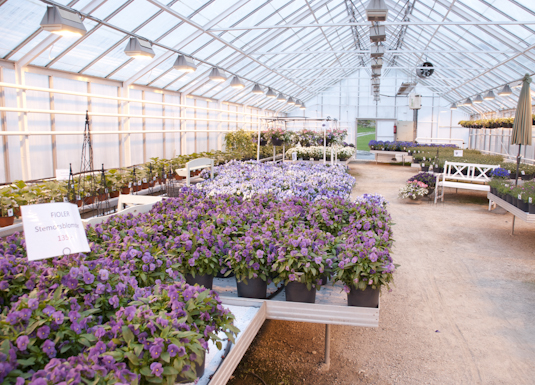 Nå er halvparten av veksthusa fylt opp med planter til hage og terrasse. Målet er å ta i bruk hele veksthusarealet til hagesenter, og til produksjon av planter til hagesenteret.