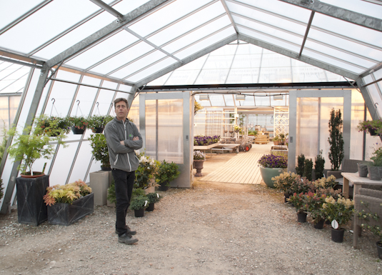 Endre i en av gangene som binder sammen de ulike veksthusa i hagesenteret.