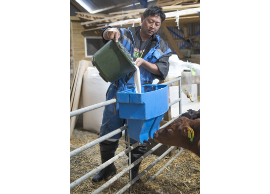 Han har akkurat gitt kalvane mjølk, og vel ofte å bære både mjølk og kalvar for treninga si skuld. Van Duh kom som flyktning til Noreg, og kjem opphavleg frå Chinland i Burma. I heimlandet var han bonde. Han dyrka ris og grønsaker, i tillegg var det 6 kyr, 3 hestar, 15 høner og 1 gris på garden. Van Duh skildrar eit landbruk som er svært ulikt det norske, men kjærleiken til dyra har han med seg.