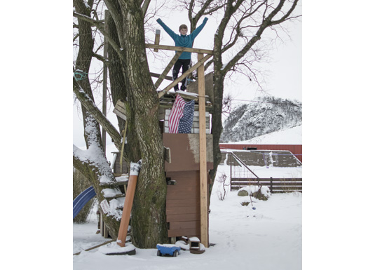 Det er tid for ettermiddagsrunden i fjøset. Ragnhild strør spon under dyra, medan Van Duh fôrar. Han kan arbeide meir og meir på eigahand. Han har også fått prøve seg med både snøskooter og ski i snøen.