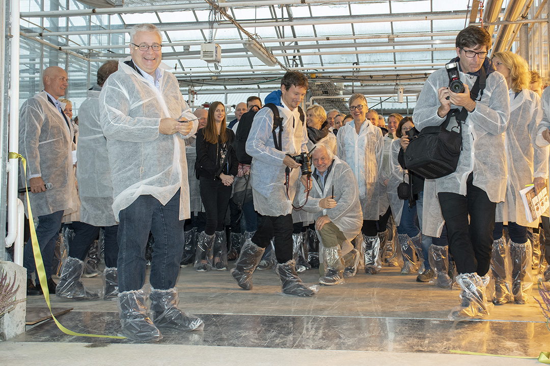 Landbruksminister Bård Hoksrud har ikkje før klipt over den grøne silkesnora, før porten inn til det tusen kvadratmeter store, flunkande nye og høgmoderne veksthuset opnar seg. Der inne gror alt tomatplanter, bær og eksotiske matvekster godt. Forsøket med produksjon utan CO2-utslepp, og med berre fornybar eller eigenprodusert energi er i gang. Avansert fotografering av planter for optimalt tilpassa dyrkingstilhøve, likeså. Og dette er berre starten. Stasjonsjef på NIBIO Særheim, Arne Sæbø, smilar stort. Dette har han venta på i over fem år.