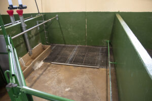 Brems og vatn: Eksempel på to ulike strøbremser som reduserer strøforbruket og mengda strø som endar i gjødsla. Grisene skal ha god tilgang på vatn. I bingen til høgre er det fem punkt. I tillegg er det vatn å henta i fôrautomatane.