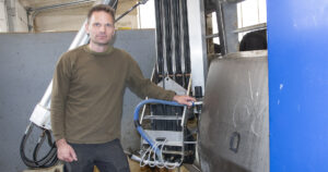 Sårbart: Mjølkeroboten treng straum, nett og vatn under trykk, og er såleis ein av dei mest sårbare maskinane på garden til Anders Braut Ueland på Vigrestad. – Me må ta eigen beredskap meir på alvor, seier han og etterlyser initiativ frå både maskinforhandlarar og Bondelaget.