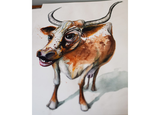 Hilde har vore i Hallingdal, på Nærbø, Geilo og Egersund for å helse på både bønder og kyr. Ho er like fasinert kvar gong ho blir kjend med ei ny ku. Mytar, sagn og fakta dannar grunnlaget for teikningane hennar.