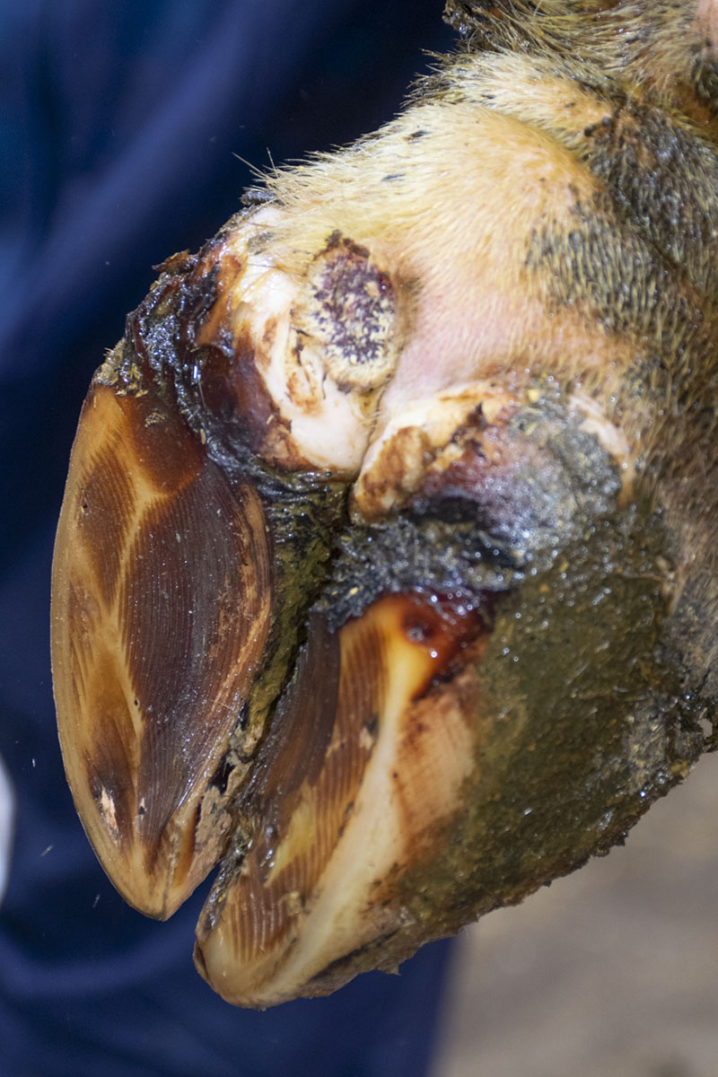 Smittsom og smertefull: Digital dermatitt er en smittsom klauvsjukdom som gir sår i og rundt klauvspalten. Får sjukdommen fritt spillerom vil tilfellene etter hvert bli alvorligere og gi halthet. Foto: Liv Kristin Sola