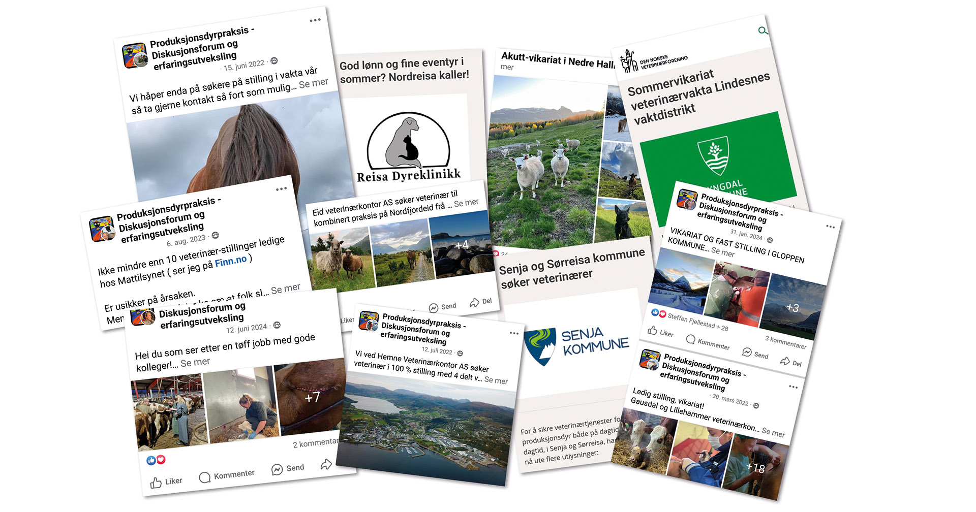 Jobb hjå oss! Eit lite utval av dei mange stillingsannonsane som søkjer etter veterinærar vitnar om eit stort behov rundt om i landet.