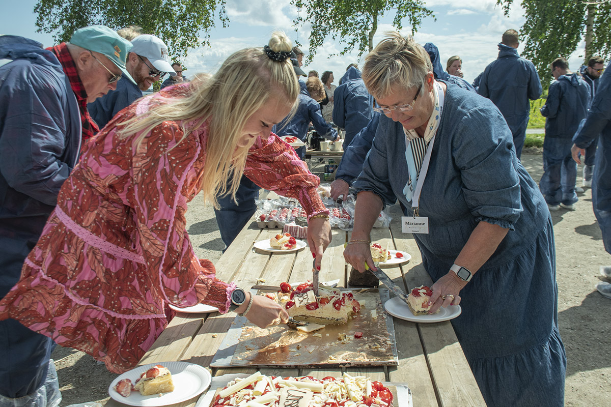 Dansk gjestfriheit: På Ulvsbjerggård hjå Hans (far) og Jeppe (son) Ulvsbjerg Rasmussen, diska dei opp med kake og dei tradisjonelle danske romkulene. Servert av kona til Hans, Marianne, og kjærasten til Jeppe, Froukje.