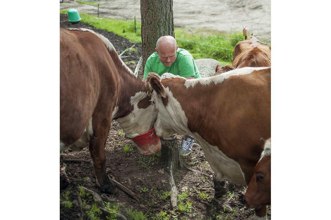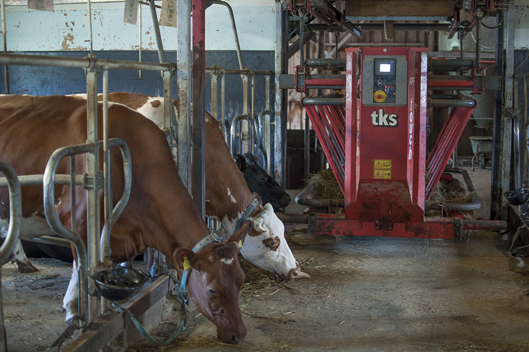 Mjølkekyrne går ute på eit dyrka beite. Terje deler kyrne inn i to grupper; den eine er ute på dagen, medan den andre er ute på natta. Bakgrunnen for dette er at dei vil utnytta både plassen i fjøset og på beitet så godt som mogleg.