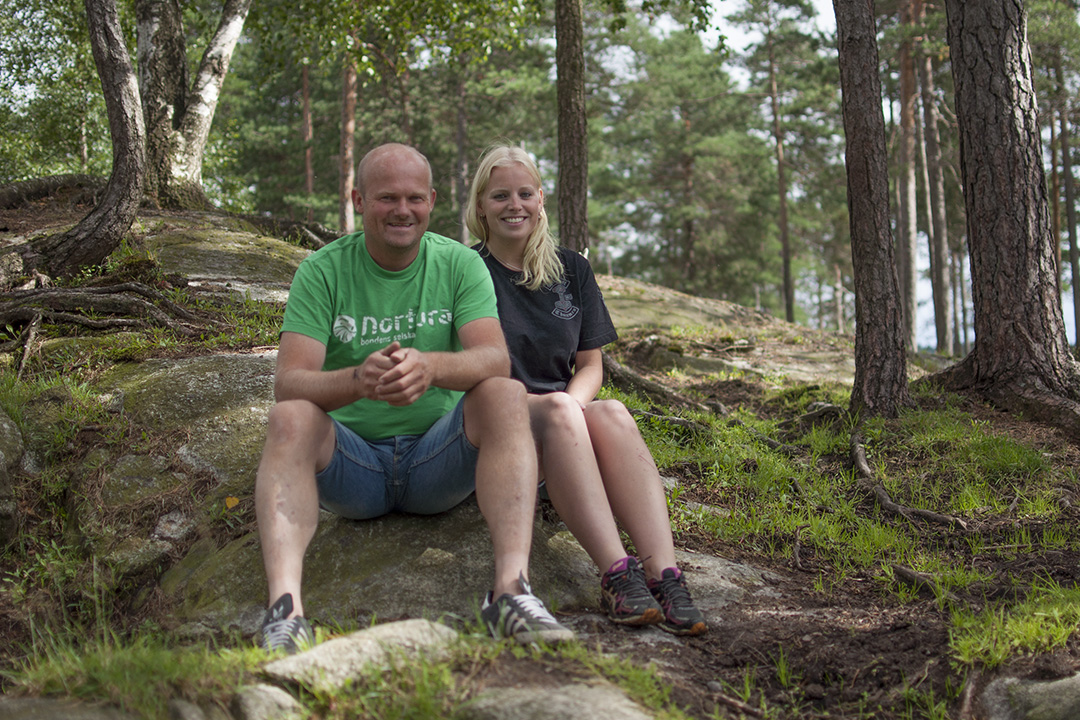 Terje og Elin trivast godt saman på garden. – Skal eg sjå noko til han, så må eg vere med litt, fleiper Elin.