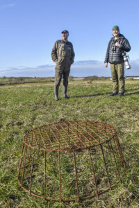 Vipevertskap: Bonde Frank Tunheim på vipejordet sitt, saman med Frode Falkenberg frå Birdlife Norge.