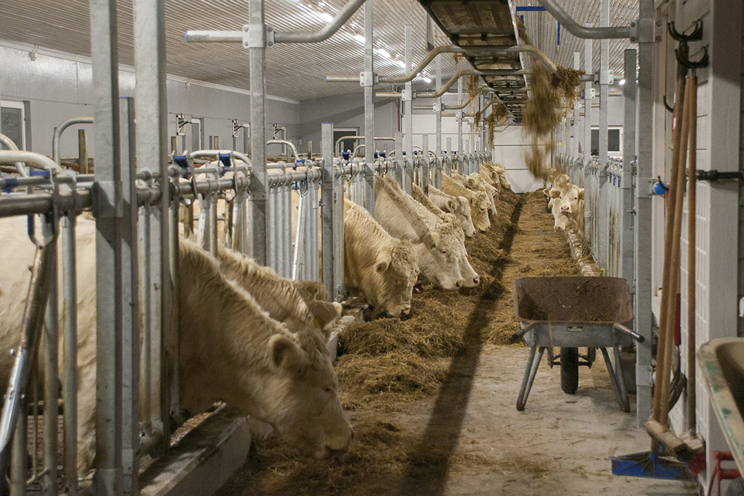 – Me har plass til 30 ammekyr med full oppfôring av stut, fortel Jim Arild. I tillegg har dei innkjøpte fôringsoksar.