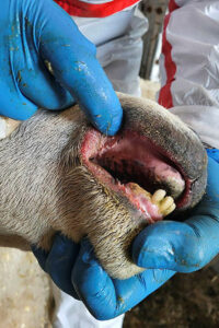 Sau med symptomer på blåtunge i munnen. Bildene viser sau fra en bondegård i Kristiansand og er tatt 11. september 2024. Foto: Marie Myklatun Krosness