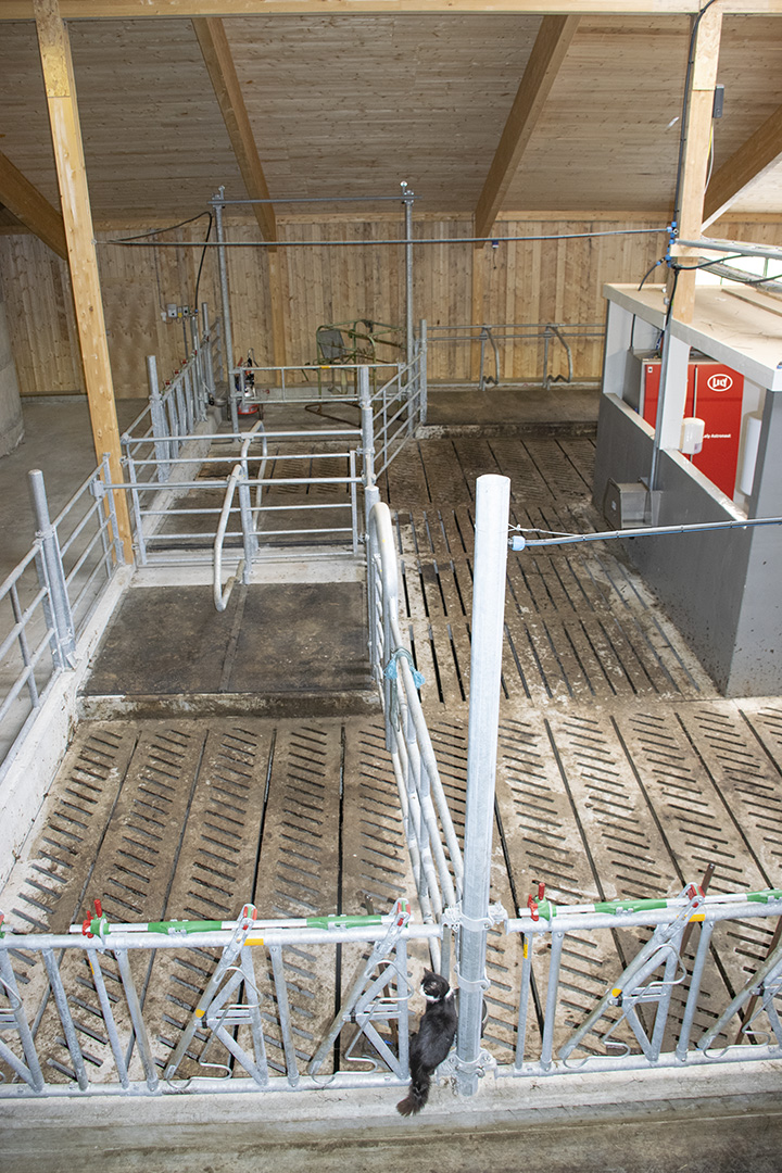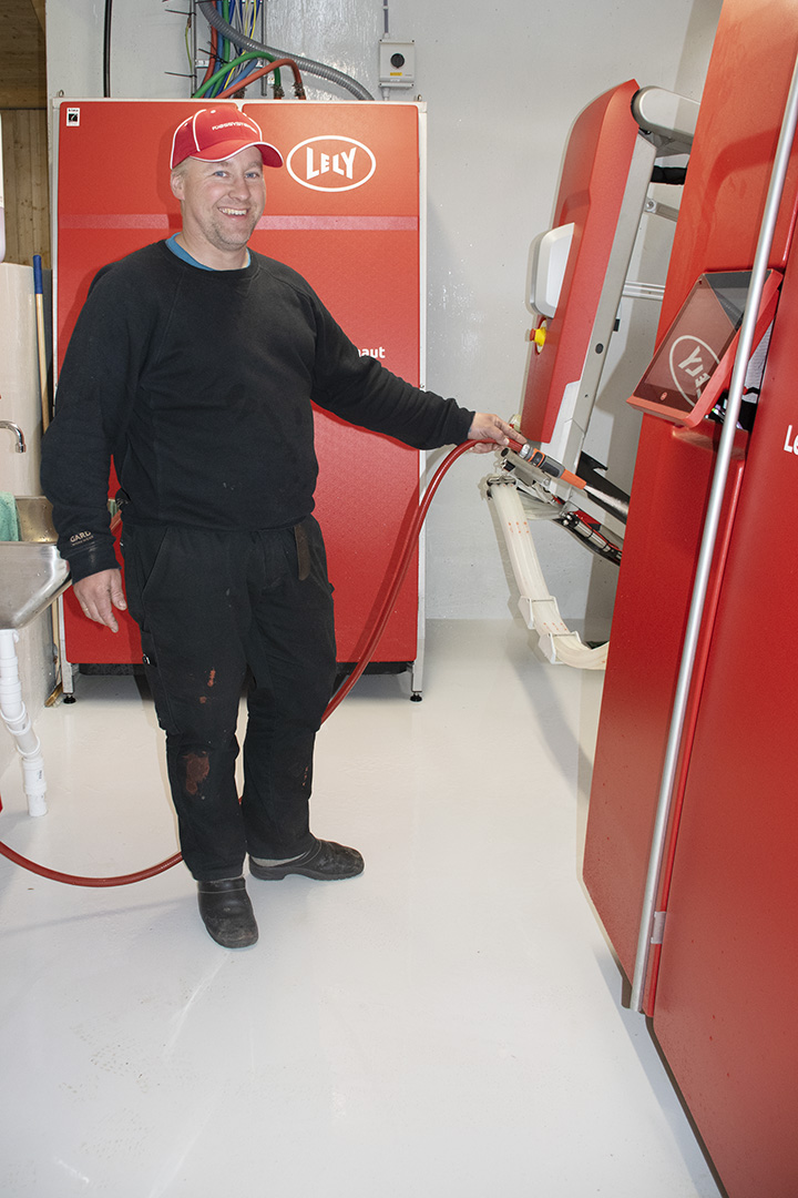 Fjøssystemer leverte i-mek, spalt og innreiing. Då mjølkeroboten, ein Lely A5, vart forseinka, fekk han kompensert for ventetida med diverse ekstrautstyr på roboten. «Luksus» han ikkje hadde kosta på seg.
