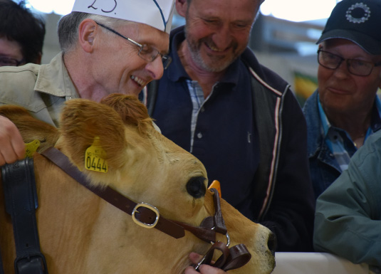 Nokre av regionens flottaste kyr var samla for å konkurrera om stasband og titlar under kuustillinga på Jærmessa på Varhaug lørdag 29. august. Berge Ims, rådmann i Hå kommune, var invitert til å dela ut prisane Miss Jæren og Årets Gullku.