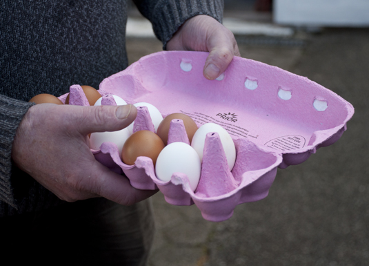 – Eg ser at mine høner legg brune egg, men i forskjellige nyansar, fortel han.