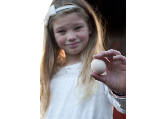 Åtte år gamle Celine Strømland Norum likar best dei kvite egga. Likevel lurte ho: Kvifor er nokre egg kvite, medan andre er brune?