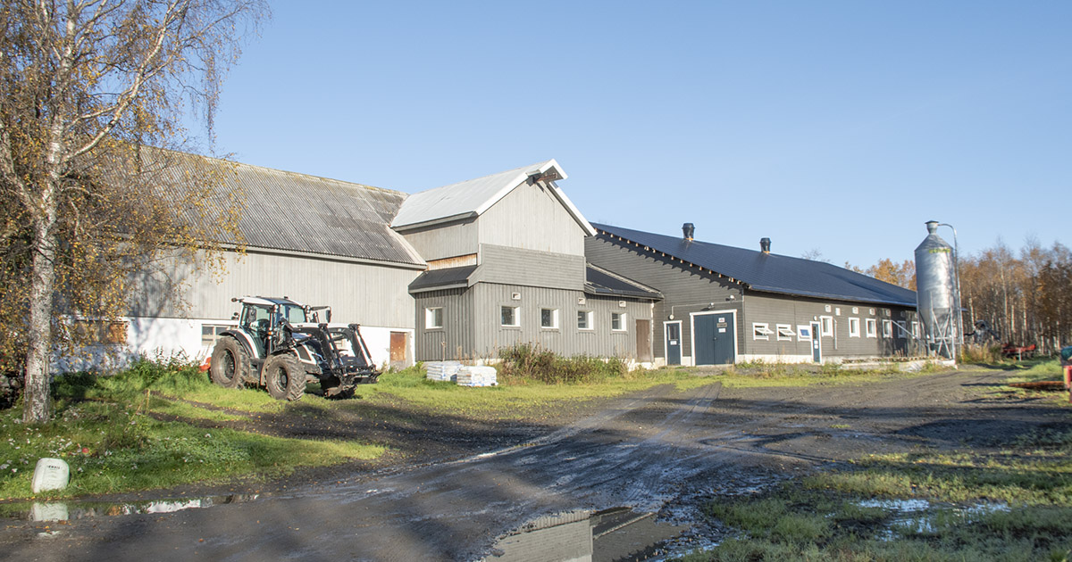 Bilete av bøndene Agnete Hansen og Henry Ole Larsen sitt sjølvbygde fjøs i Pasvik.