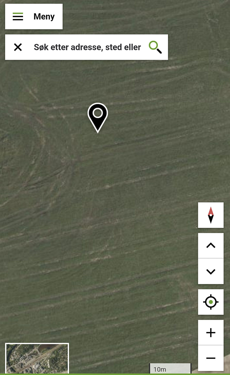 Spor: Skjermdumpen syner flyfoto frå kom­munekart.com av eine enga til Nils Ole Nordland.