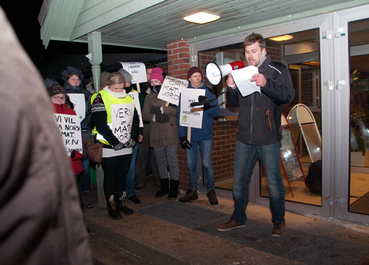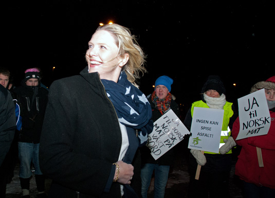 Ungdommar frå ulike lag og politiske parti stod utanfor lokalet med plakatar, faklar og ropert. Bodskapen var felles og klar: Redd matjorda.